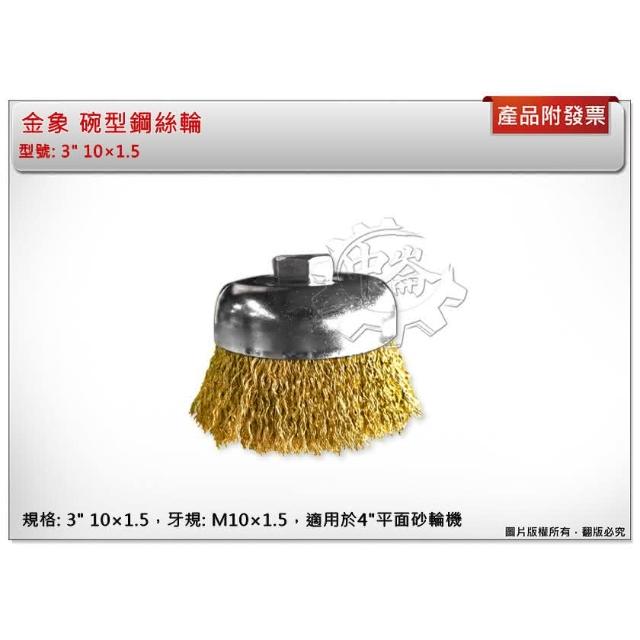 台灣製 金象 碗型鋼絲輪 3吋 M10×1.5 碗型鋼刷 碗刷 適用4平面砂輪機 中崙五金
