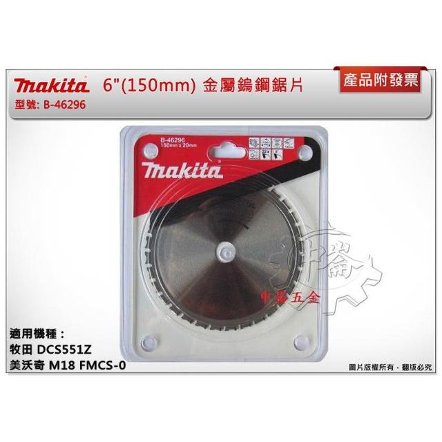 MAKITA 牧田6金屬鎢鋼鋸片 B-46296 適:DCS551Z DCS553 M18 FMCS-0 中崙五金