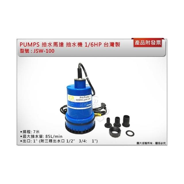 PUMPS 抽水馬達 抽水機 沉水泵浦 1/6HP 台灣製 JSW-100 中崙五金