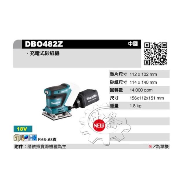 MAKITA 牧田18V 充電式砂紙機 DBO482Z 拋光機 DBO482 單機+選項 研磨機 中崙五金