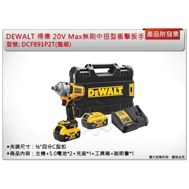 DEWALT 得偉20V Max無刷中扭型衝擊扳手 DCF891P2T DCF891 單機+選項 中崙五金