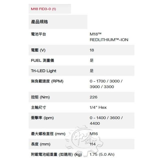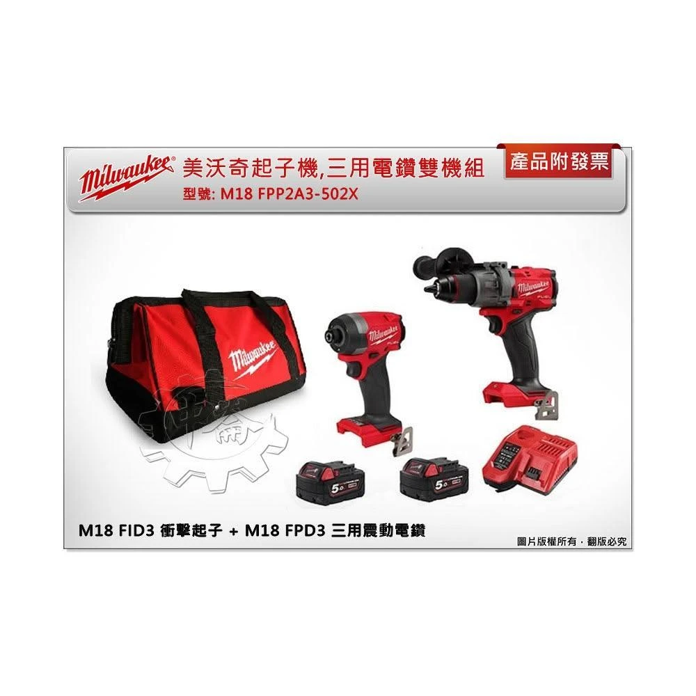 Milwaukee 美沃奇 (贈品 M18LL-0) 美沃奇雙機組 M18 FPP2A3-502X (FID3+FPD3) 中崙五金