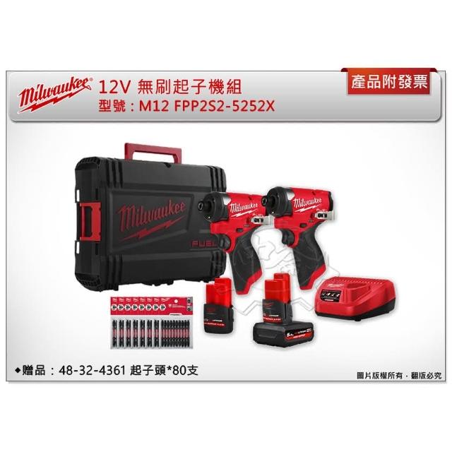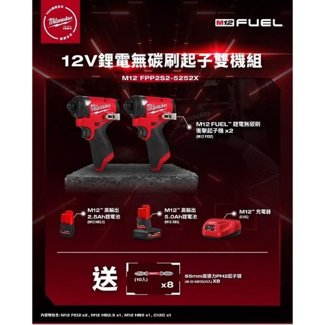 Milwaukee 美沃奇送48-32-4361起子頭雙機組M12 FPP2S2-5252XFID2+FID2 中崙五金