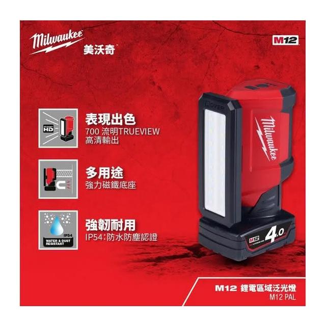 Milwaukee 美沃奇12V鋰電 區域泛光燈 M12 PAL-0 單機+選項 USB輸出 內鍵磁鐵 M12 PAL 中崙五金