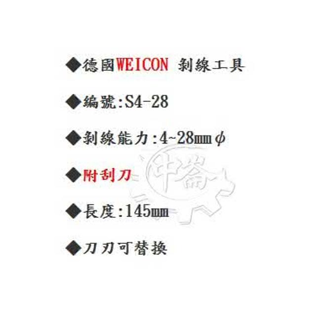 德國製 WEICON NO.S4-28 電纜剝皮刀 電線剝線鉗 快速剝皮鉗 脫皮鉗 中崙五金