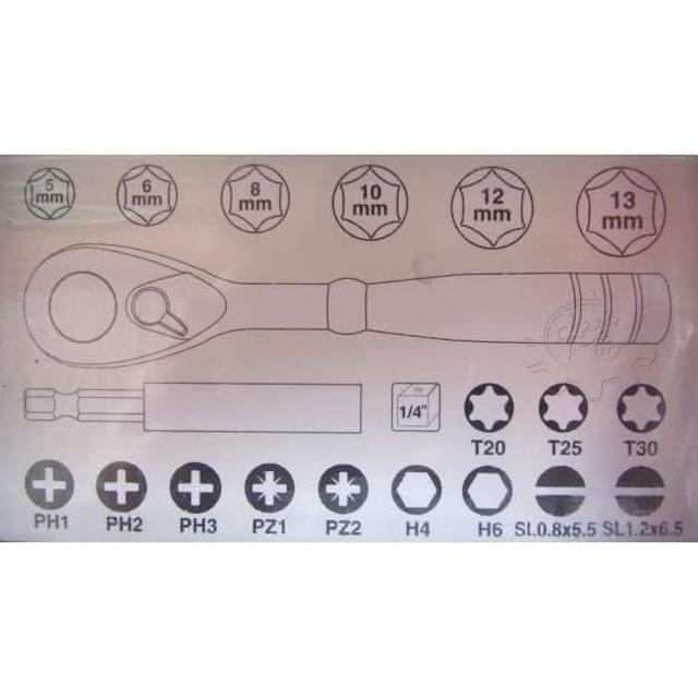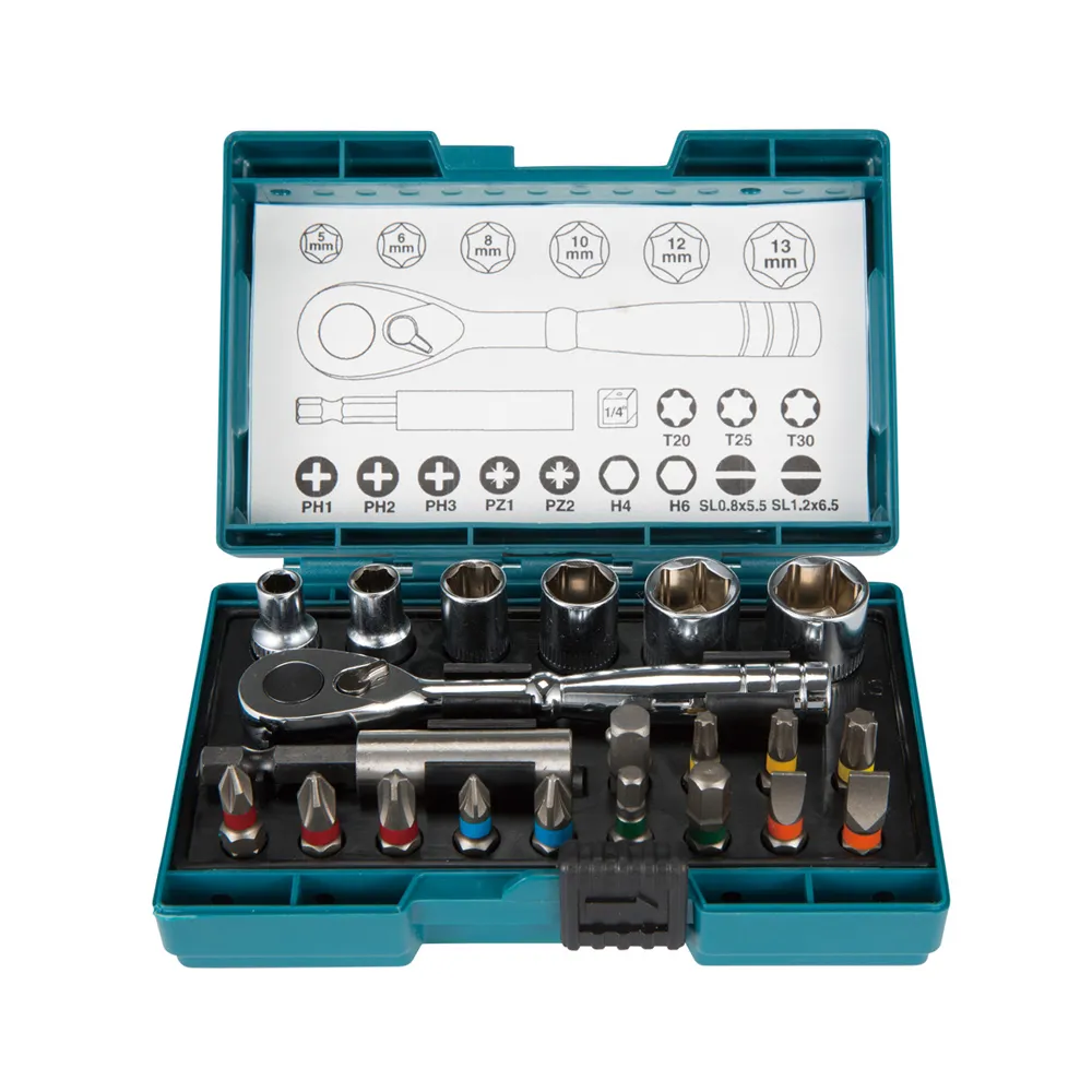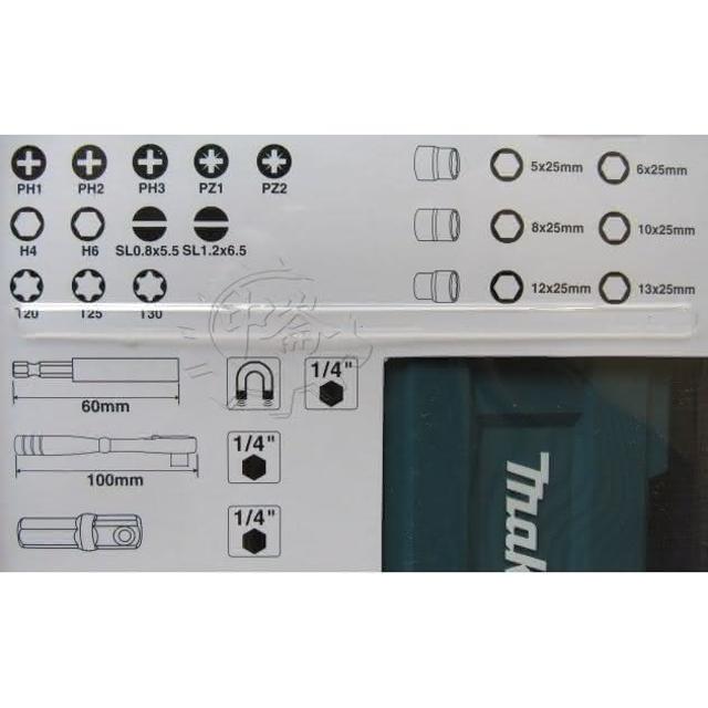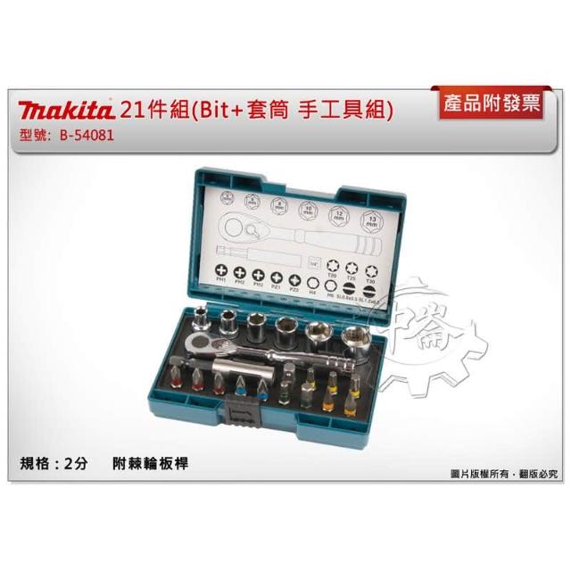 MAKITA 牧田原廠 21件組 1/4 2分棘輪 Bit+套筒 手工具組 B-54081 中崙五金