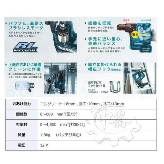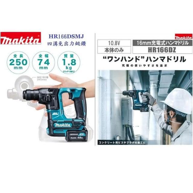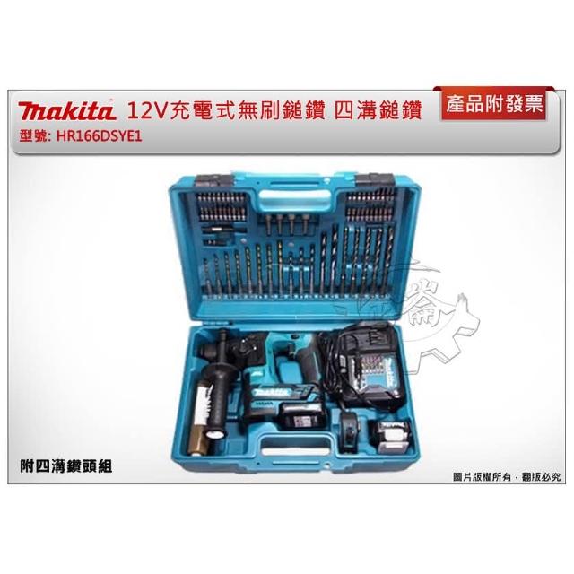 MAKITA 牧田12V 充電式無刷四溝鎚鑽 HR166DSYE1 HR166 單機+選項 中崙五金
