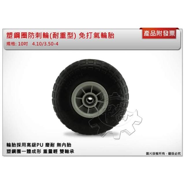 10吋塑鋼圈防刺輪耐重型 手推車 獨輪車PU輪 防刺胎 防刺輪 免打氣輪胎 雙軸承設計 中崙五金