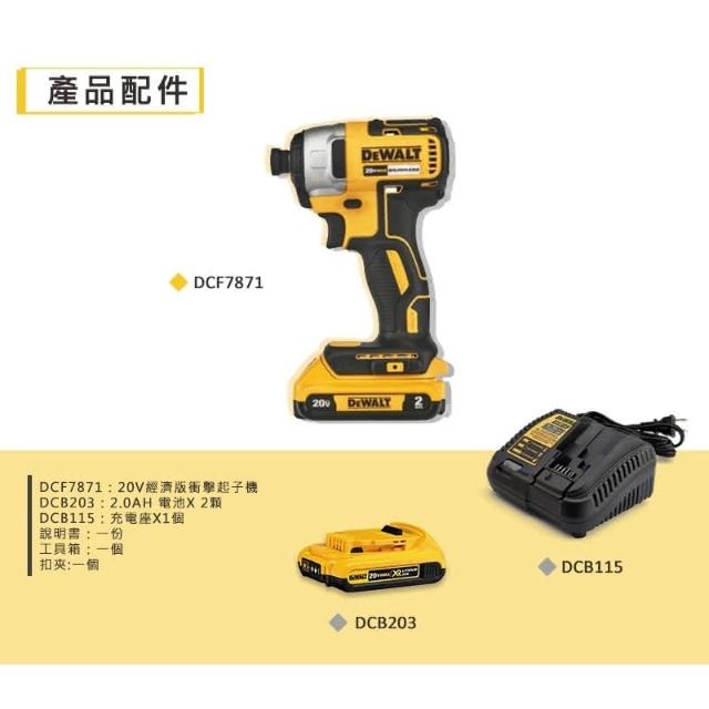 DEWALT 得偉20V無碳刷經濟版衝擊起子機 DCF7871D2 單主機+選項 DCF7871 電動螺絲起子機 電鑽起子機 中崙五金