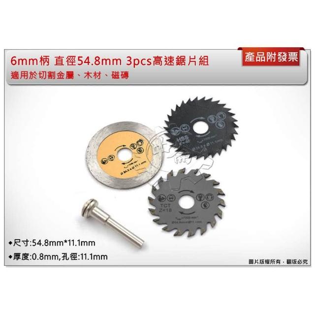 3PC木板圓形鋸片組 直徑54.8mm 6mm柄徑 木板切割鋸片 切割片 木工鋸片 丸鋸片 中崙五金
