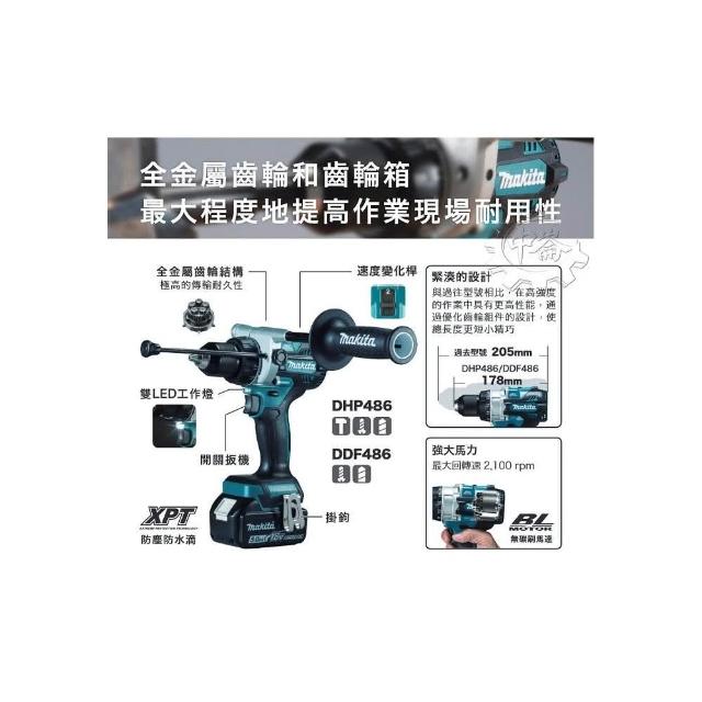MAKITA 牧田18V 無刷震動電鑽 DHP486RGE DHP486RTE DHP486Z 電動螺絲起子機 電鑽起子機 中崙五金