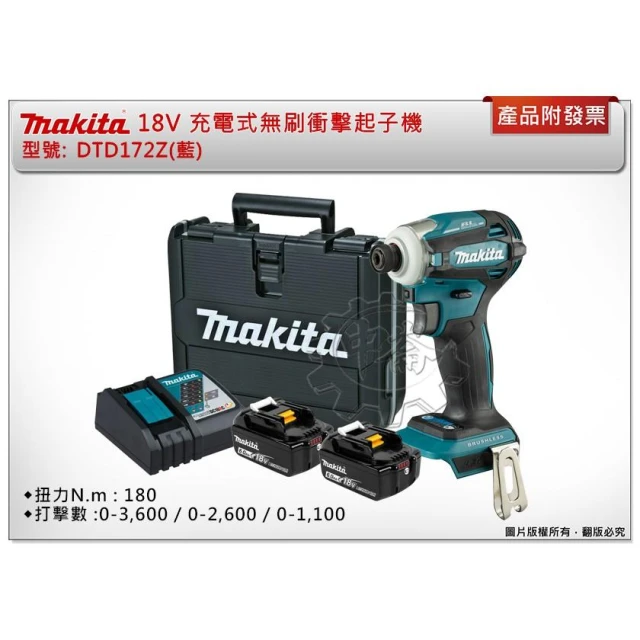 MAKITA 牧田18V無刷衝擊起子機 DTD172Z藍 中國製 DTD172RGE DTD172 電動螺絲起子機 電鑽起子機 中崙五金
