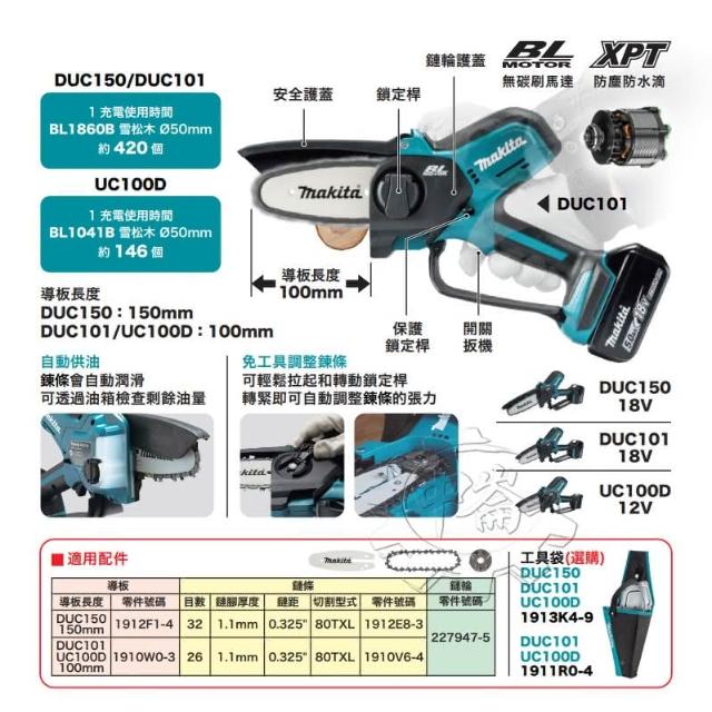 MAKITA 牧田18V充電式6吋無刷鏈鋸機 DUC150RGJ 手持鏈鋸機 DUC150Z 單機+選項 中崙五金