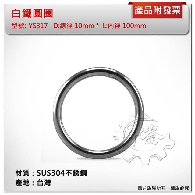 台灣製 10*100mm 白鐵圓圈 材質:SUS304不銹鋼 型號:YS317 白鐵環 白鐵圈 中崙五金