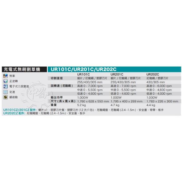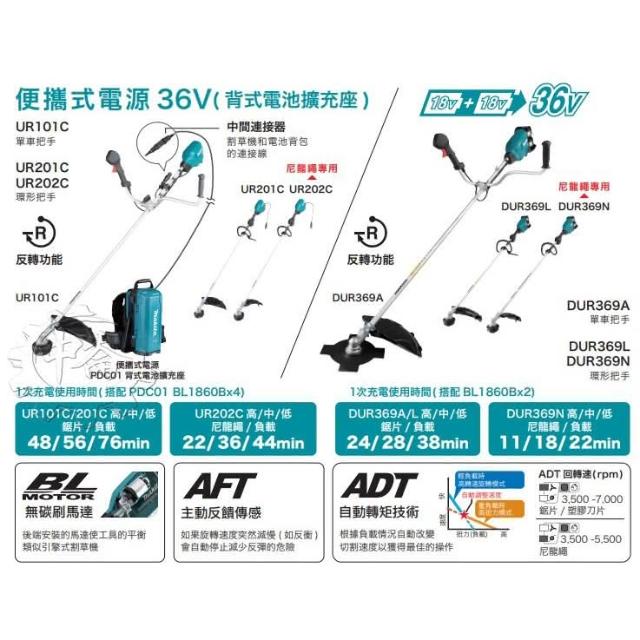 MAKITA 牧田36V無刷割草機(單車把手) UR101CZ (單機) 需搭PDC01或PDC1200A1才可用 中崙五金
