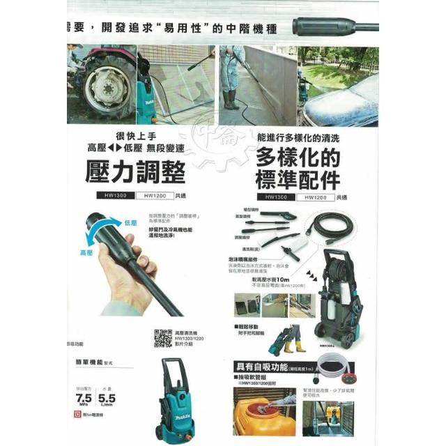 MAKITA 牧田HW1200 電動高壓清洗機 75BAR/420L 壓力調整+自吸功能 中崙五金
