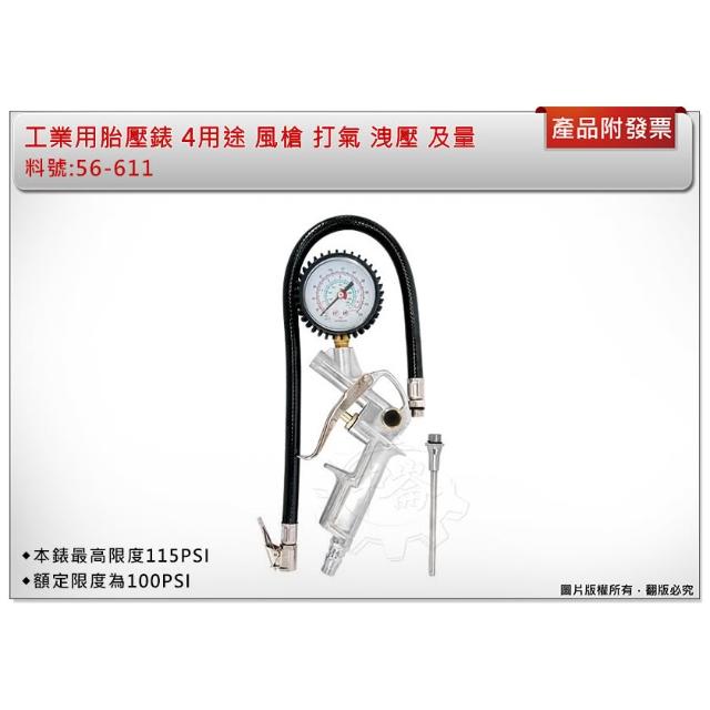 工業用胎壓錶 4用途 風槍 打氣 洩壓 及量 加厚高壓管 56-611 胎壓表 胎壓槍 中崙五金