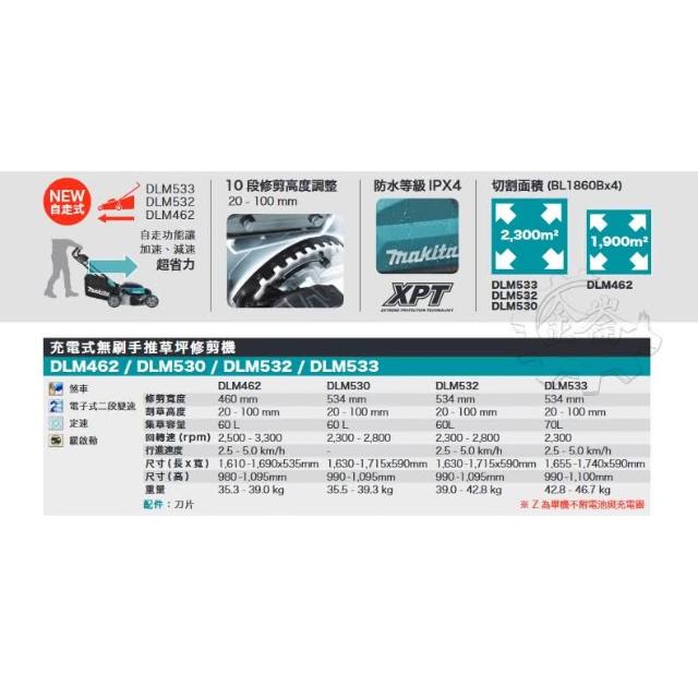 MAKITA 牧田牧田 自走式 36V充電式無刷草坪修剪機 DLM462Z 自走式割草機 DLM460 BL1860 中崙五金**
