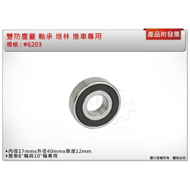 雙防塵蓋 軸承 培林 推車專用 #6203 內徑17mmx外徑40mmx厚度12mm 中崙五金