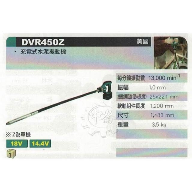 MAKITA 牧田18V 充電式水泥振動機 DVR450Z DVR450 單機+選項 混凝土施工專用震動機 中崙五金