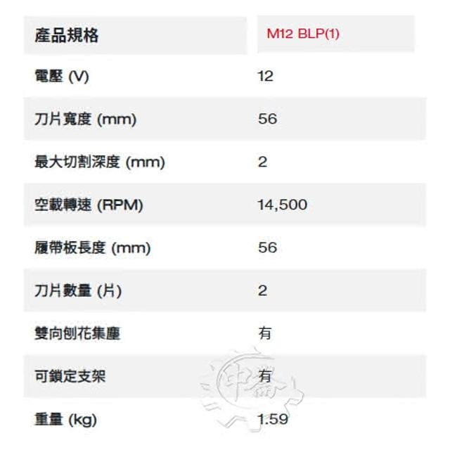 Milwaukee 美沃奇12V鋰電精銳無碳刷電刨機 M12 BLP-0 M12 BLP 電刨刀 中崙五金