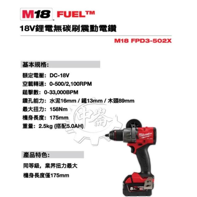 Milwaukee 美沃奇18V無刷三機組 M18 FID3-0+M18 FPD3-0+M18 FMTIW2F12-0 中崙五金