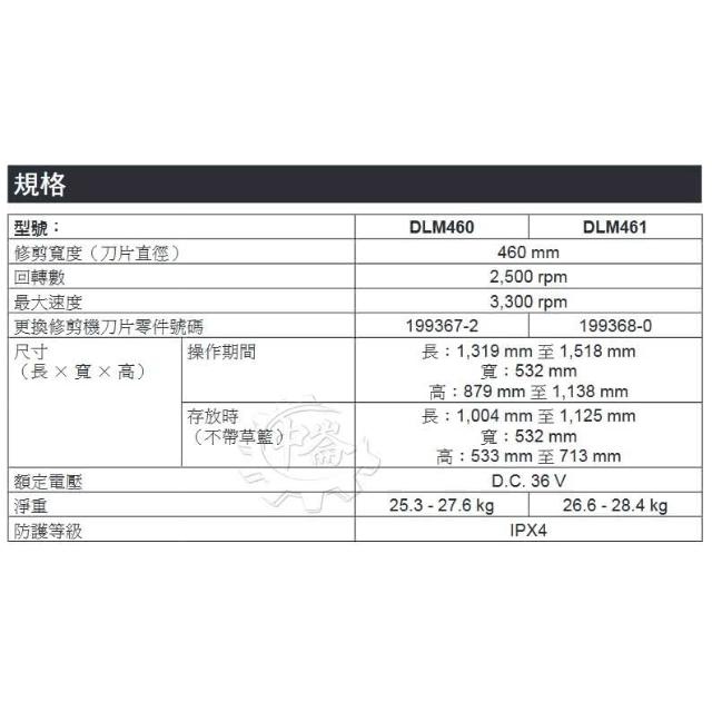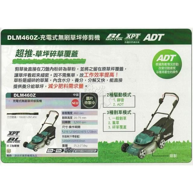 MAKITA 牧田DLM460Z 單機+選項 36V 充電式無刷草坪修剪機 剪草機 中崙五金