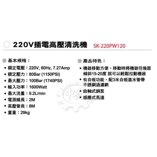 SHIN KOMI 型鋼力220V高壓清洗機 洗車機 SK-220PW120 自吸功能 感應式馬達 中崙五金