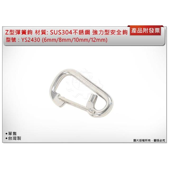 台灣製 Z型彈簧鉤 SUS304不銹鋼 型號:YS2430 ( 6mm/8mm/10mm/12mm) 彈簧扣環 中崙五金