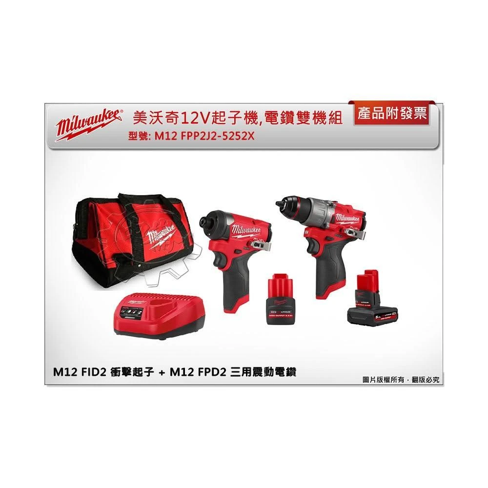Milwaukee 美沃奇雙機組 M12 FPP2J2-5252XFID2+FPD2 中崙五金