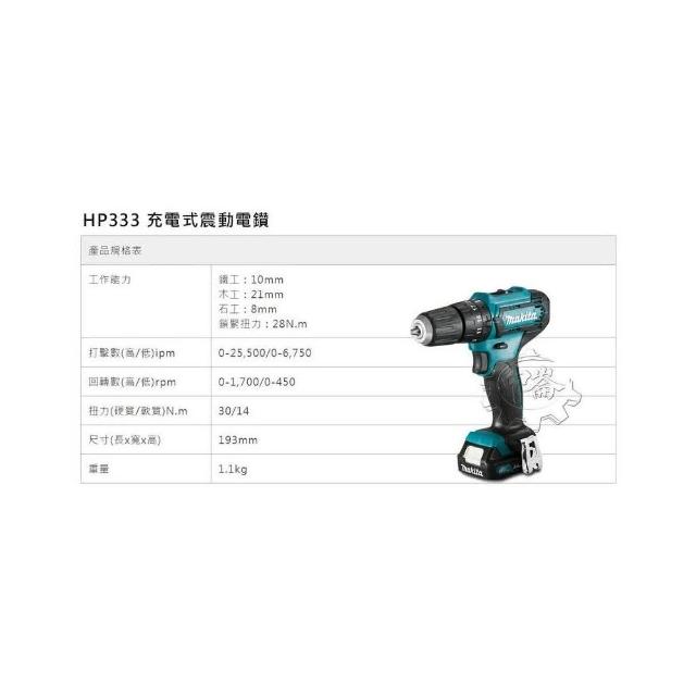 MAKITA 牧田12V充電式震動電鑽 HP333DZ HP333 HP333DSYE 電動起子機 電動螺絲起子機 電鑽起子機 中崙五金