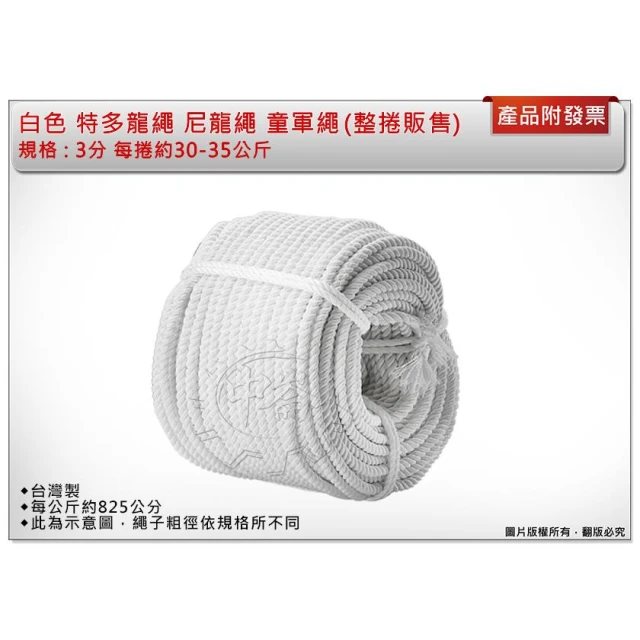 3分 白色特多龍繩 每捲約30-35公斤 整捲販售不零售 尼龍繩 童軍繩 台灣製 中崙五金