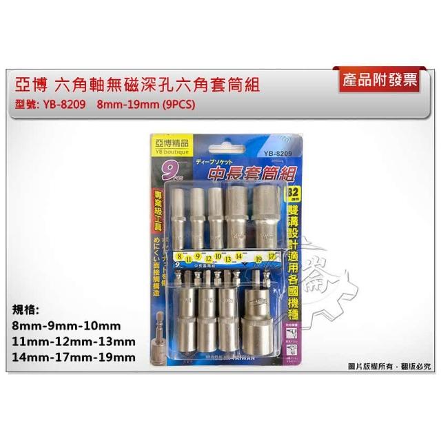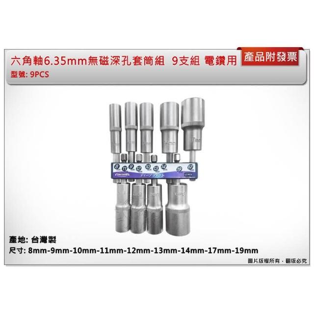 8mm-19mm 9PCS 六角軸6.35mm 無磁深孔六角套筒組(兩品牌依現貨隨機出貨) 中崙五金