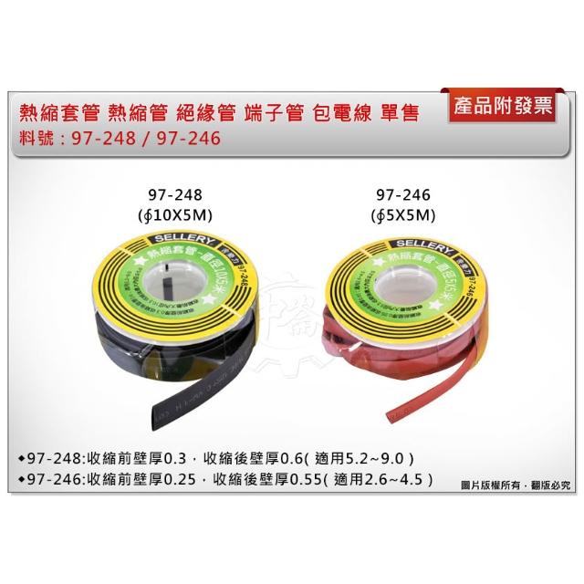 熱縮套管 熱縮管 絕緣 端子管 包電線 97-246(Φ5* 5M)/97-248(Φ10* 5M) 中崙五金