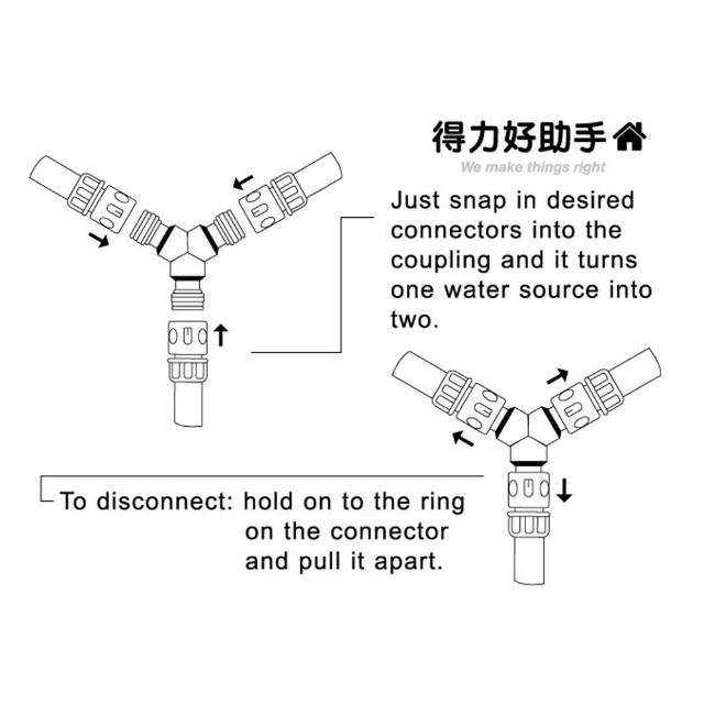 三頭水管快速接頭 三條 水管接頭 水管三通轉接頭 水管銜接 水管延長 60-101 中崙五金