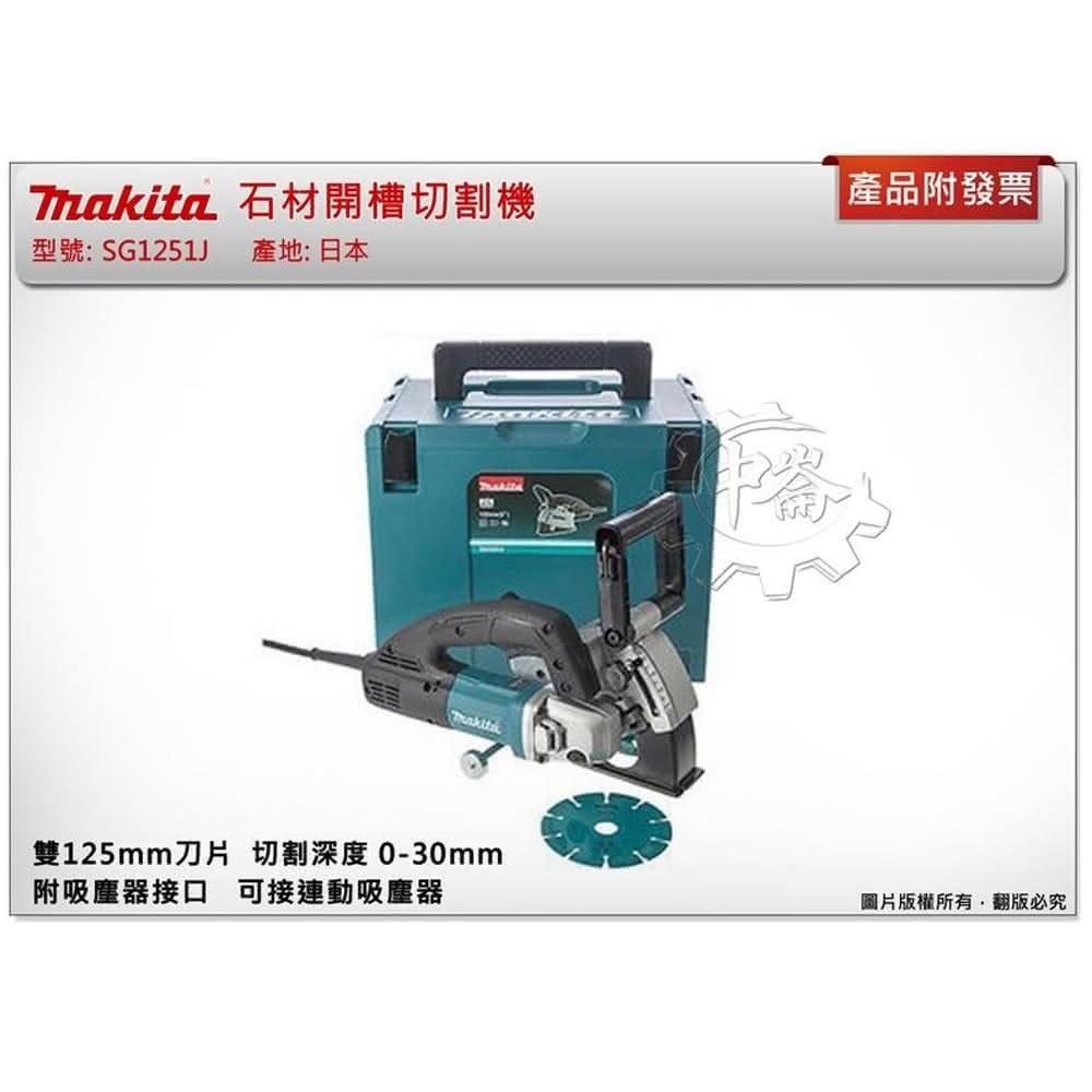 MAKITA 牧田*中崙五金【附發票】日本製 牧田 電動石材開槽切割機 125mm SG1251J 雙刀片開槽機 非槽王