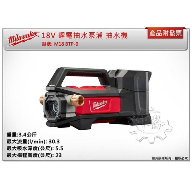 Milwaukee 美沃奇抽水泵浦 M18 BTP-0 單機+選項 充電式抽水機 6分外牙銅管接頭 BTP 中崙五金