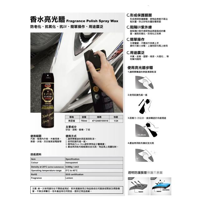 黑珍珠香水亮光腊 黑珍珠噴蠟 噴腊 噴臘 一箱24瓶 亮光蠟 750ml 台灣製 中崙五金