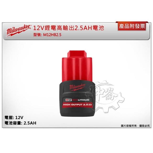 Milwaukee 美沃奇12V鋰電高輸出電池 M12HB2.5 M12 HB2.5 中崙五金
