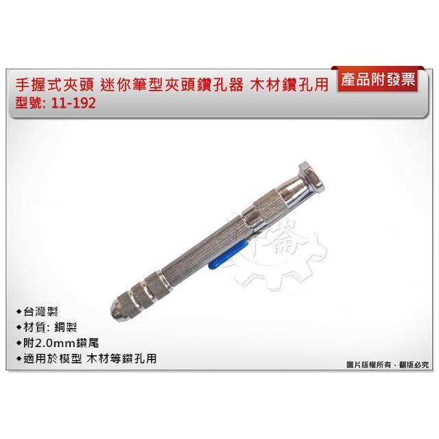 台灣製 手握式夾頭 附2.0mm鑽尾 銅製材質 迷你筆型夾頭鑽孔器 模型 木材等鑽孔用 11-192 中崙五金