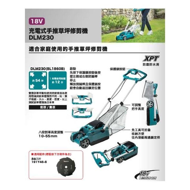 MAKITA 牧田18V充電式手推草坪修剪機圓鋸片191Y46-8 刀片 適用:DLM230 中崙五金