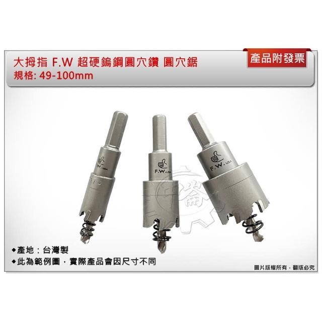大拇指 F.W 超硬鎢鋼圓穴鑽 圓穴鋸 鑽尾 鑽頭 洗孔鑽頭 刀刃加厚 單支售(17mm-18mm) 中崙五金