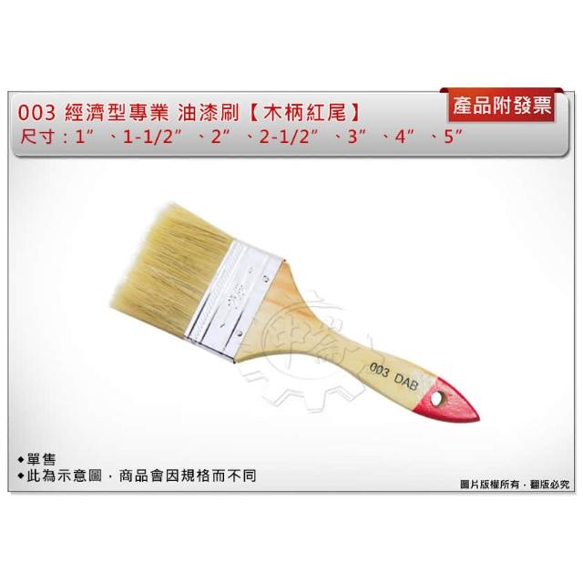 003專業五金毛刷 1-1/2吋 木柄紅尾 油漆刷 單售 中崙五金