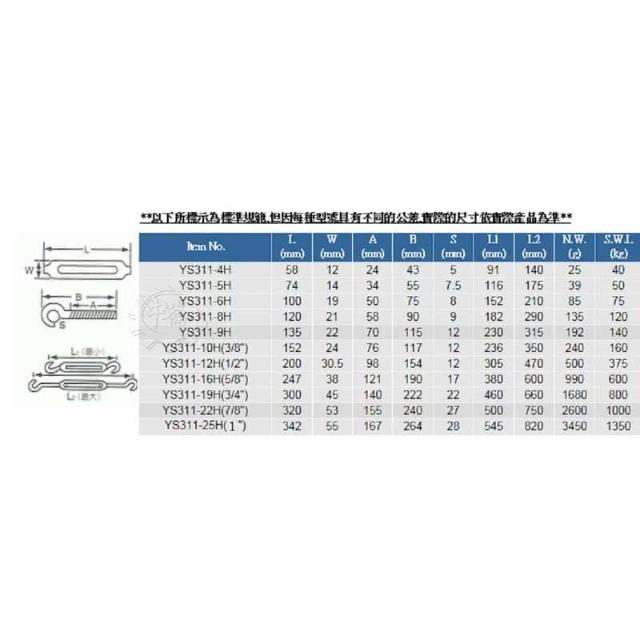 台灣製 8mm 鉤+鉤 鬆緊螺絲 材質: SUS304不銹鋼 型號 :YS311 白鐵螺絲伸縮器 中崙五金