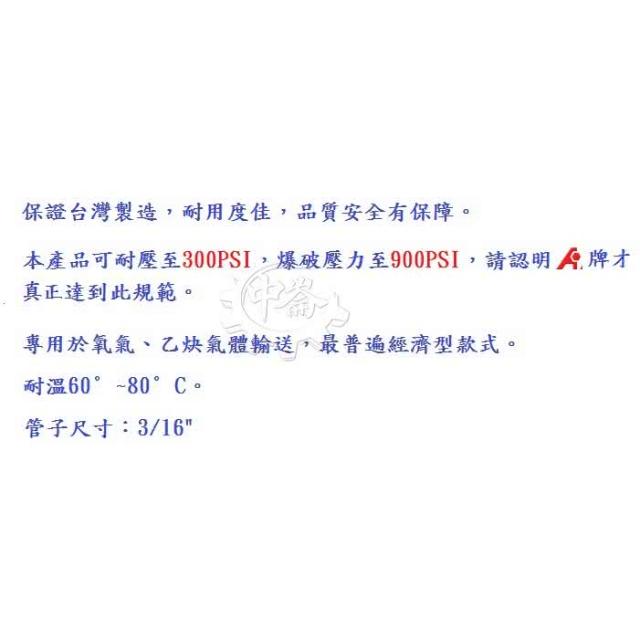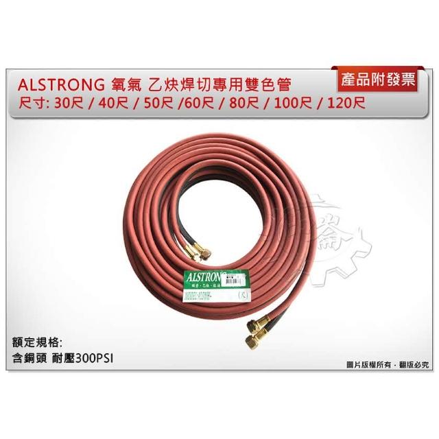 ALSTRONG台灣製 氧氣 乙炔焊切專用雙色管 含銅頭 耐壓300PSI80尺 中崙五金