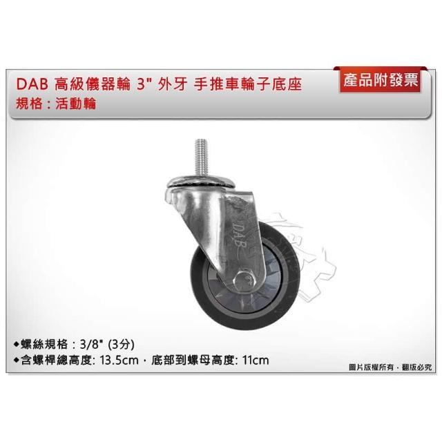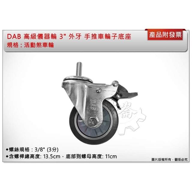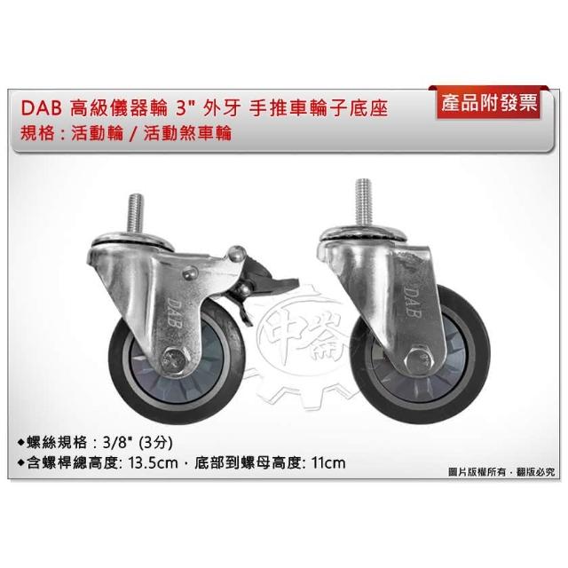 DAB 儀器輪 3吋 外牙螺桿煞車輪 手推車輪子底座加厚更耐重 耐磨無噪音 中崙五金