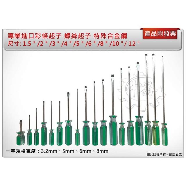 專業進口彩條起子一字 螺絲起子 特殊合金鋼 單支(2吋*3.2mm) 中崙五金