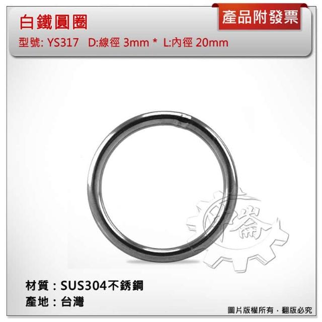 台灣製 3*20mm 白鐵圓圈 材質:SUS304不銹鋼 型號:YS317 白鐵環 白鐵圈 中崙五金