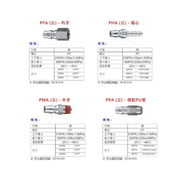 台灣製 THB 快速接頭 鋼鐵製 空壓機 氣動快速接頭 單顆售(40PPA 8mm*12mm公頭) 中崙五金