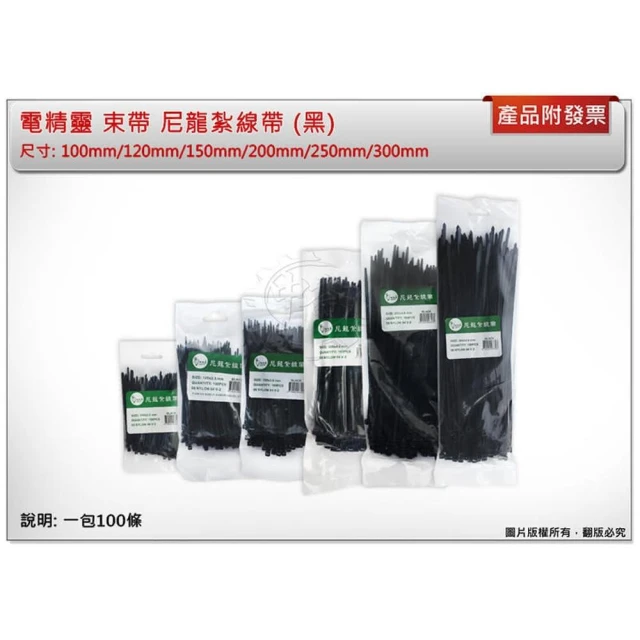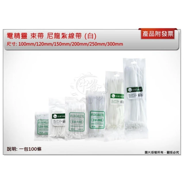 spirit 電精靈白色/黑色 束線帶 束帶 4.8*300mm 中崙五金